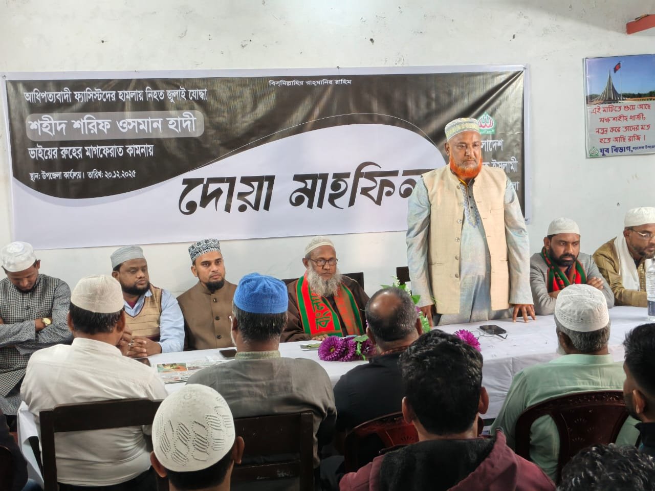 মোনাজাত পরিচালনা করেন বাংলাদেশ জামায়াতে ইসলামীর উপজেলা ভারপ্রাপ্ত আমীর মাওলানা মোহাম্মদ ইসলাম উদ্দিন।
